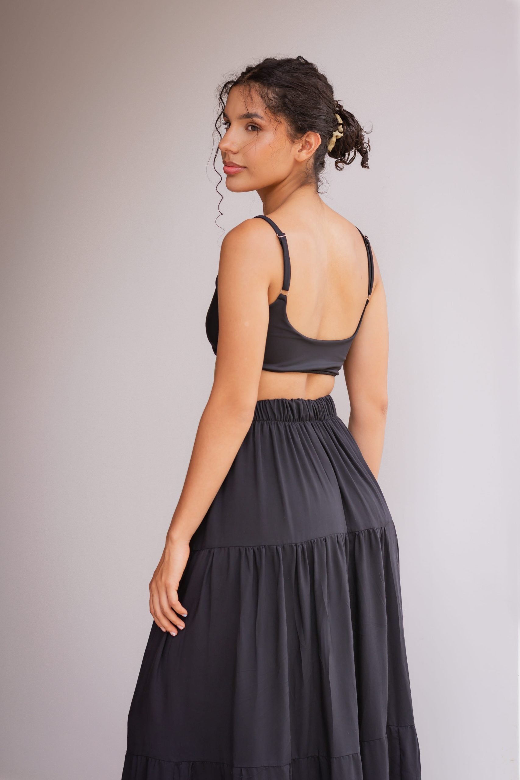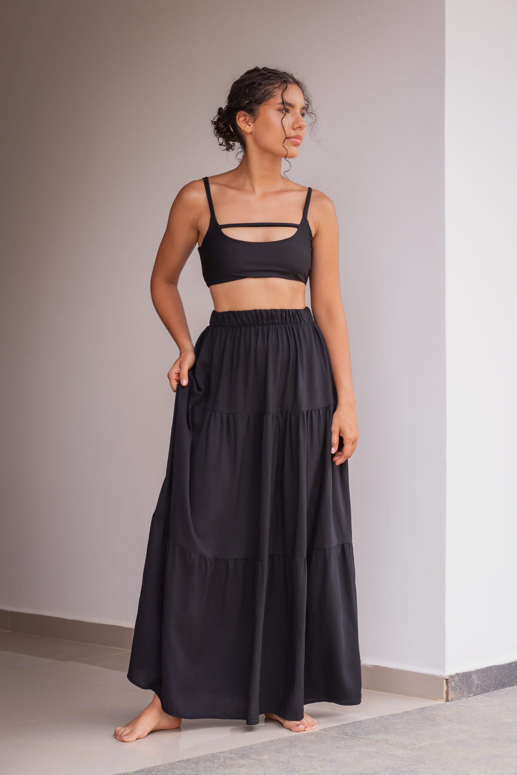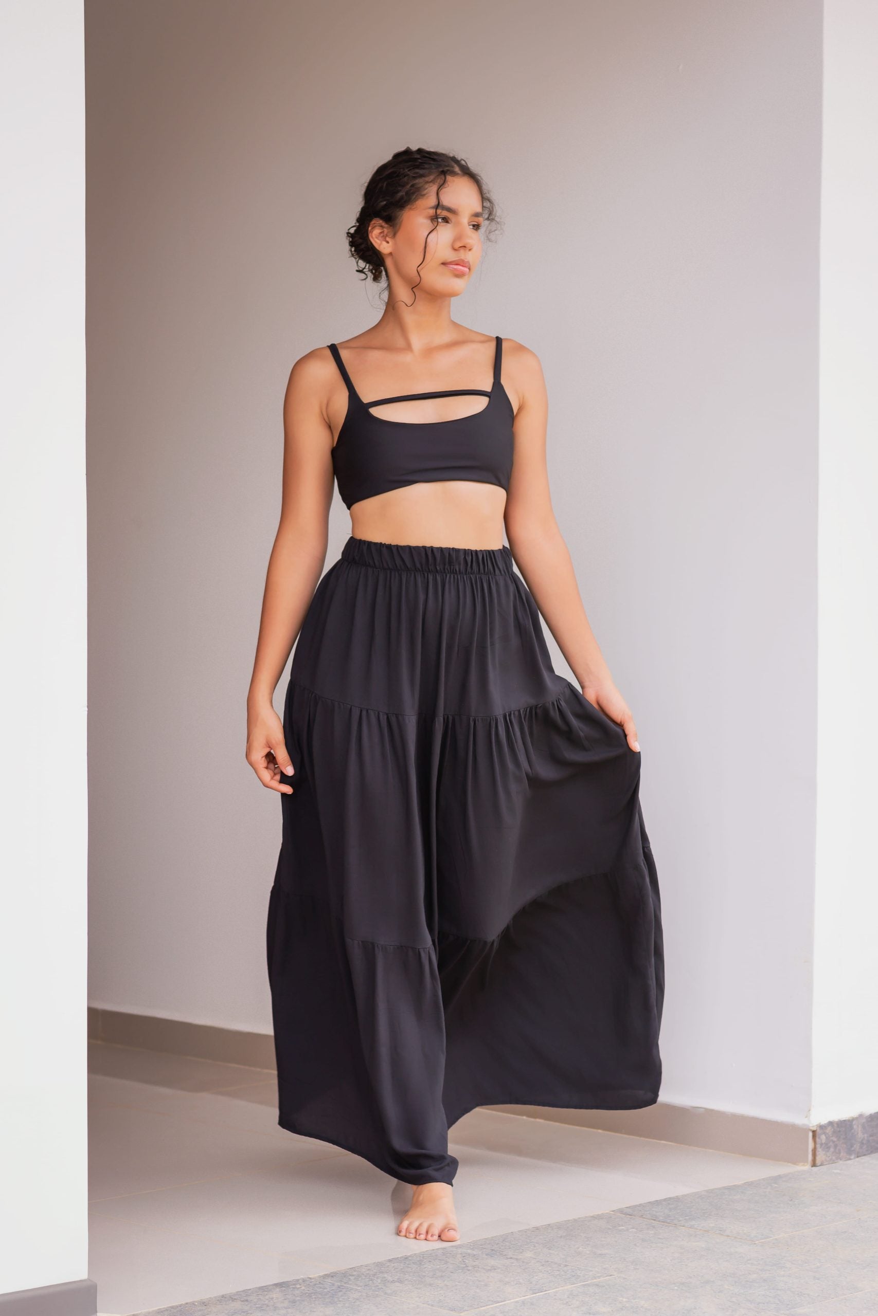 Esta falda es un must en el guardarropa de toda fashionista. Falda en algodón, en tres tiempos y cintura resortada.