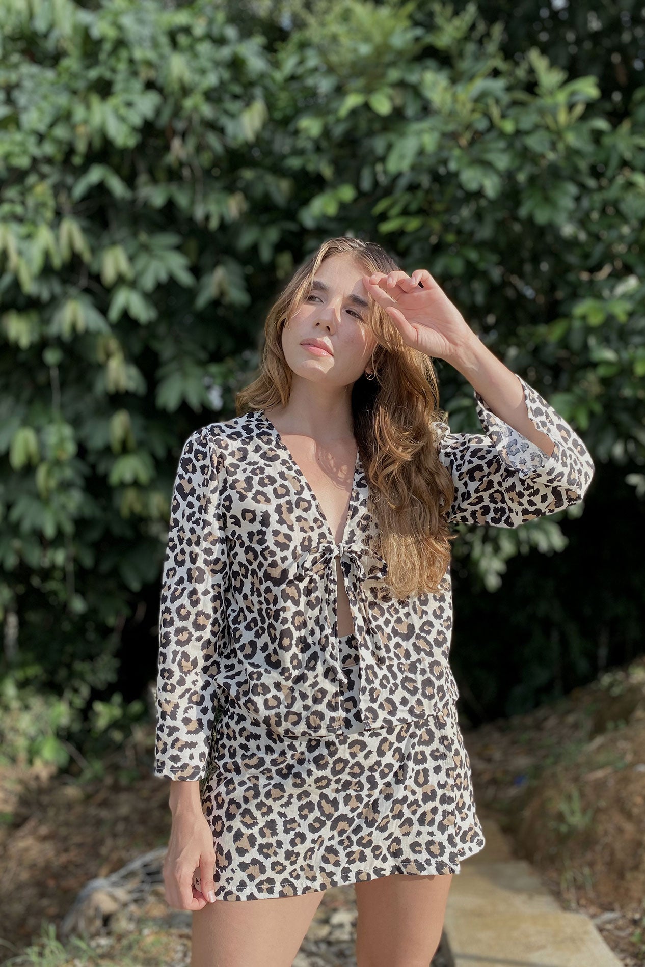 Hecha en lino, con print de leopardo, con elástico en la cintura posterior que permite que se adapte a mas de una talla. Un diseño y un print que jamás pasará de moda.