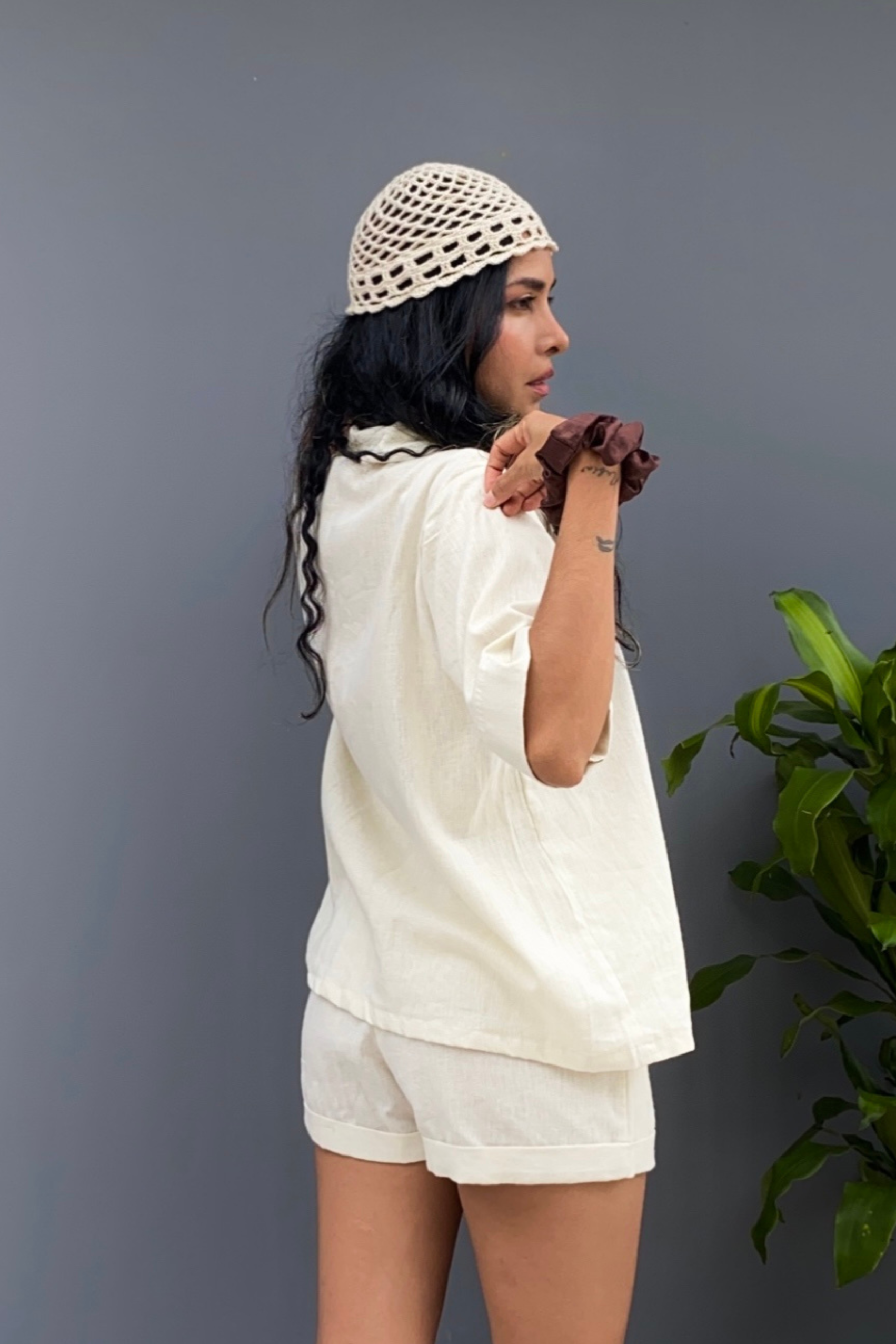 Short en lino 100%, de cintura encauchada y guardapolvo, un clásico de fondo de armario con toques boho que amarás.