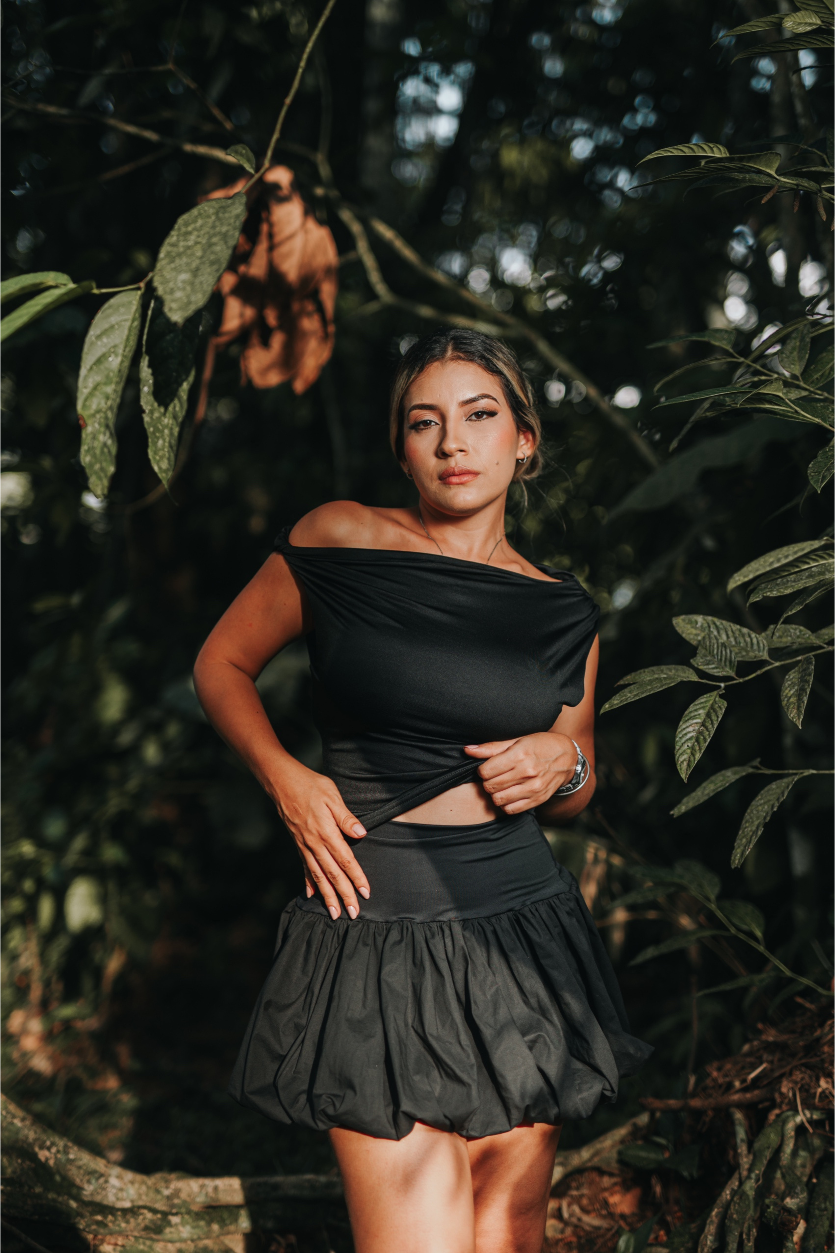 Top de mangas asimétricas, hecho en lycra doble adelante y atrás con un ajuste ideal.